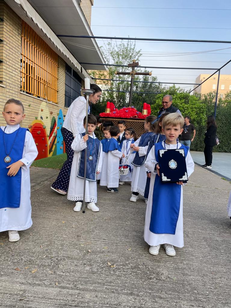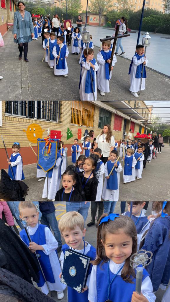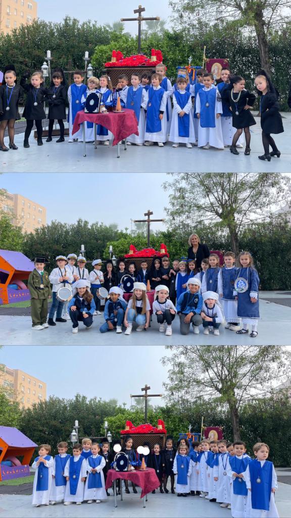 20 abril, 2023 Un año más, el viernes de dolores, procesionamos por los alrededores de nuestro colegio con nuestro paso de Semana Santa.